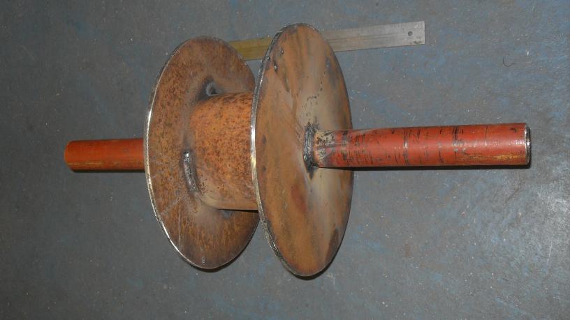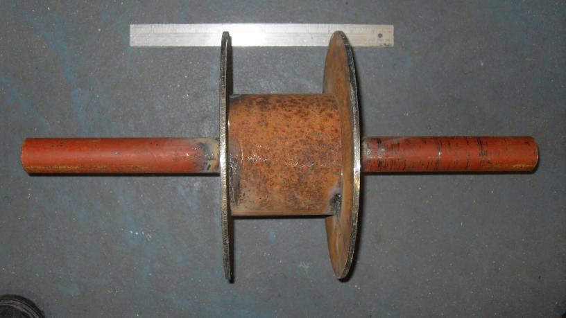 Handle completed. Handle grip is sleeve freely rotating on structural shaft of handle. For simplicity, handle boss is lightly welded to axle with superficial welds - quick and easy to do and hopefully easily ground off to release handle.