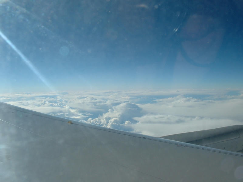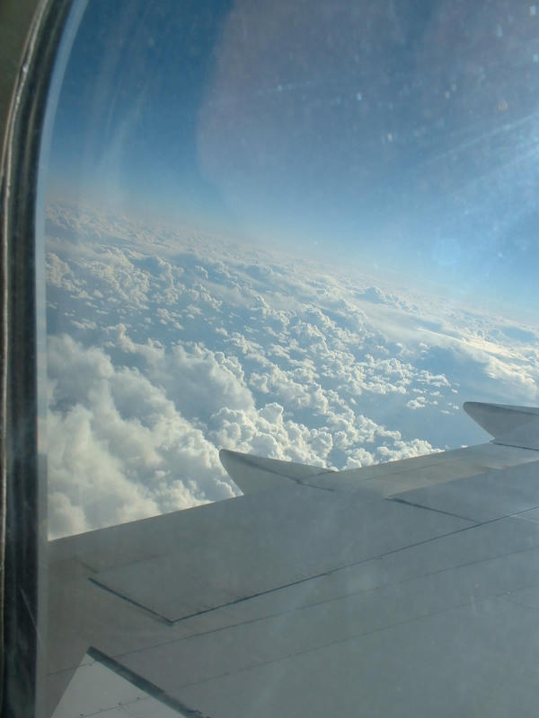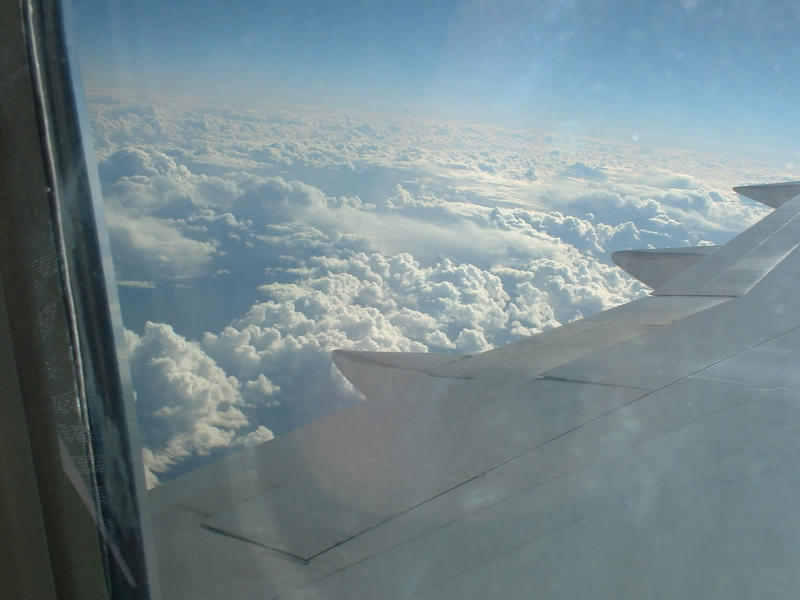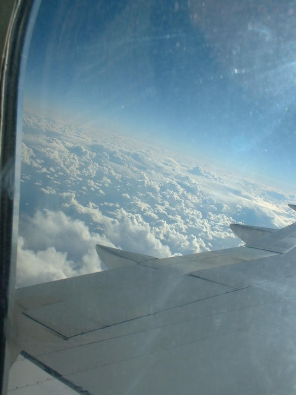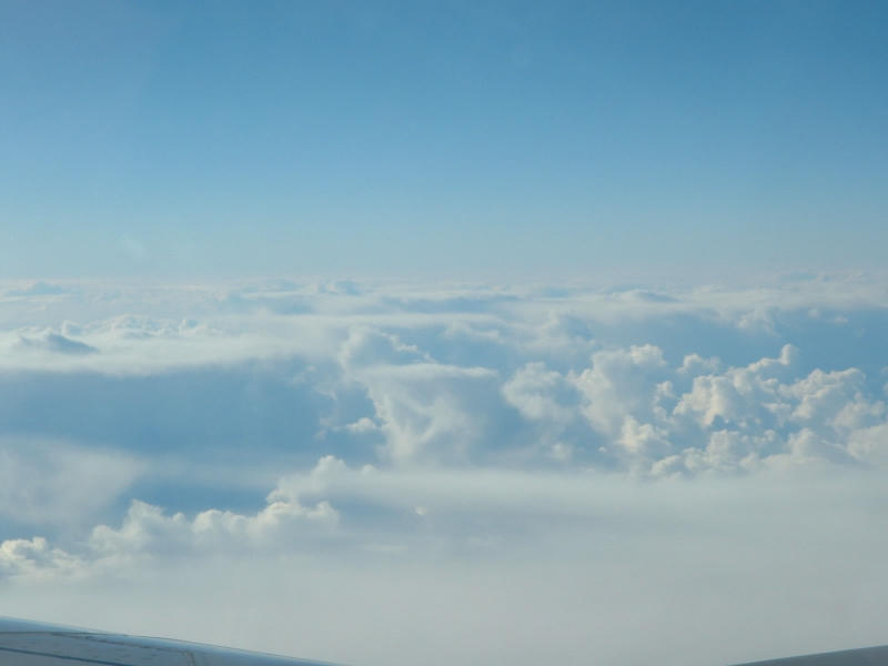 Here is the world above the clouds, as seen on my journey back to Cleveland in October 2002. I was going to be met at the airport and I knew the weather on the ground was going to be grey and overcast, so I took these pictures to keep available the image of a world of brightness high above. The first picture is from near the Atlantic coast, the last while descending into the clouds approaching Cleveland over Lake Erie.
